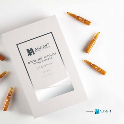 La dottoressa Camilla D’Antonio racconta così l’idea alla base di Age Reverse di Miamo®, “una formula rivoluzionaria che unisce l’innovativa tecnologia degli attivi ad azione epigenetica alle più raffinate strategie formulative cosmetiche”. È proprio il termine epigenetica a ricorrere più volte durante la nostra chiacchierata con la direttrice scienti ca della Medspa Srl. Trattiamo di una branca della scienza molto recente che studia le interazioni tra tutti i fattori ambientali e il nostro DNA. Per capirci meglio: secondo l’epigenetica, un aumento dei fattori negativi quali fumo, inquinamento, esposizione ai raggi UV non controllata e stress legato a una vita frenetica, interferiscono con la capacità del nostro codice genetico di esprimere quei geni che ci consentirebbero di avere sempre una pelle sana e dall’aspetto giovane, comportando un’accelerazione dei processi legati all’invecchiamento cutaneo. Da questa premessa nasce la