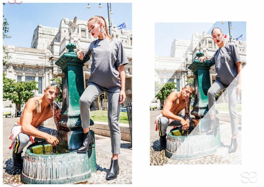 Senza scomodare Shakespeare, quella a cui assistiamo è la testimonianza di un amore ribelle e impulsivo. Gesti esuberanti, di rottura, per dichiarare la propria emancipazione da ogni etichetta. Chiome platino si sovrappongono a tracksuits e combat boots. Il codice visivo di questa love story attinge la sua forza dal substrato metropolitano che ci circonda e fa da cassa di risonanza alle nostre azioni. Moda è ciò che si vuole essere e, solamente dopo, cosa si indossa. Un invito a cercare se stessi, unâazione sempre piĂš difficile, ma che in due acquista ancor piĂš significato. A patto di conservare la sfacciataggine e la follia dei giorni migliori.