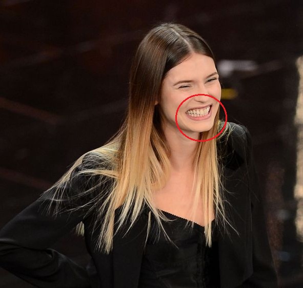 Ora, io dico – a costo di passare per invidiosa – mi vuoi per cortesia spiegare per quale motivo ti sei presentata al teatro Ariston con lo shatush più brutto della storia – speriamo breve – dello shatush, un trucco ridotto ai minimi termini, un abito fasciantissimo capace di mettere in risalto insospettabili “coulotte de cheval” e i denti gialli?